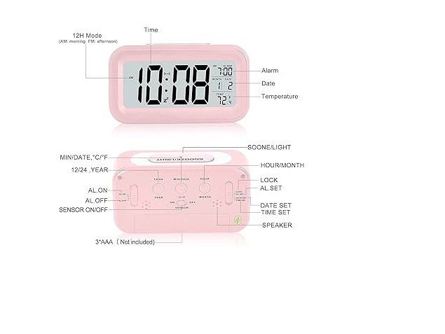 - 1x Optically Controlled Liquid Crystal Device Digital Alarm Clock Pink