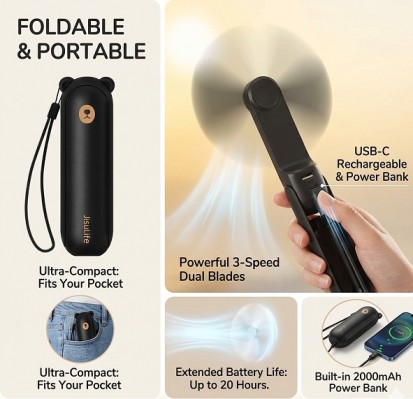 - 1x Jisulife F8X Portable Fan 4800mah Black